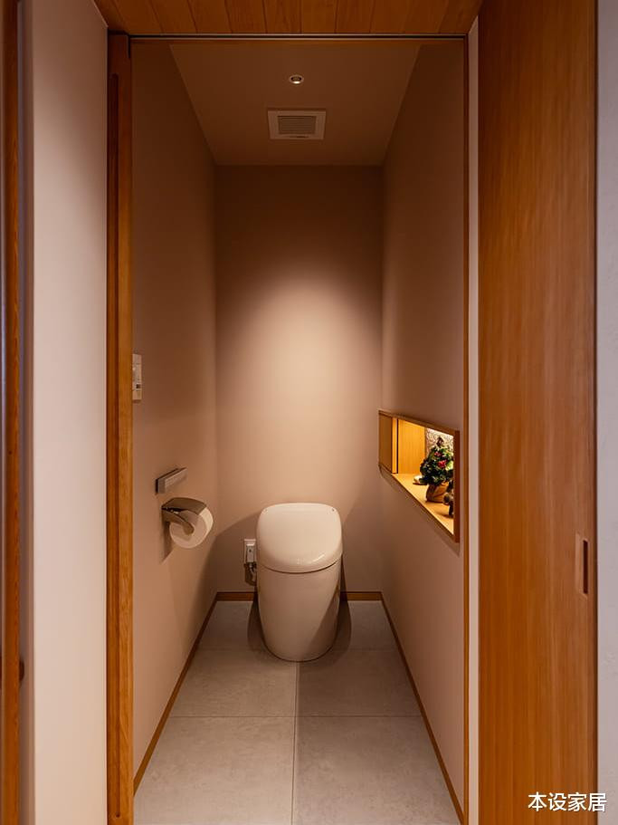 马桶间虽小,却吩咐得饶有兴味,合理的灯光衬托,以及干花的修饰,显得艺术感完全。