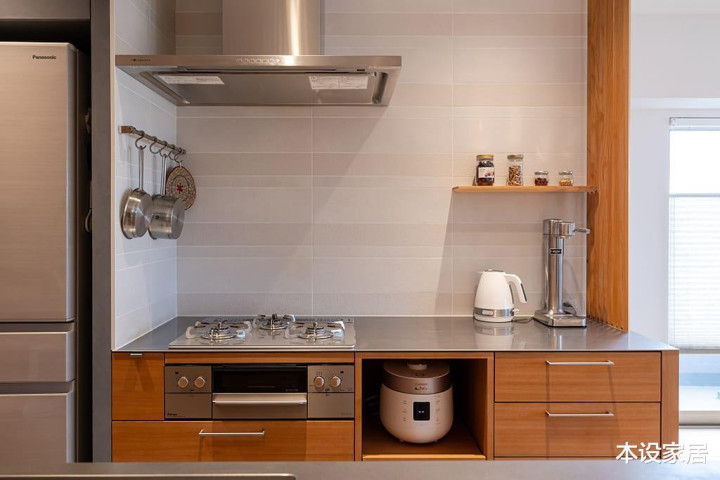 不锈钢台面耐磨好收拾,何况这位妻子烹调时,有顺手擦抹污垢的习尚,每天如斯比年终大扫除都不需要了。