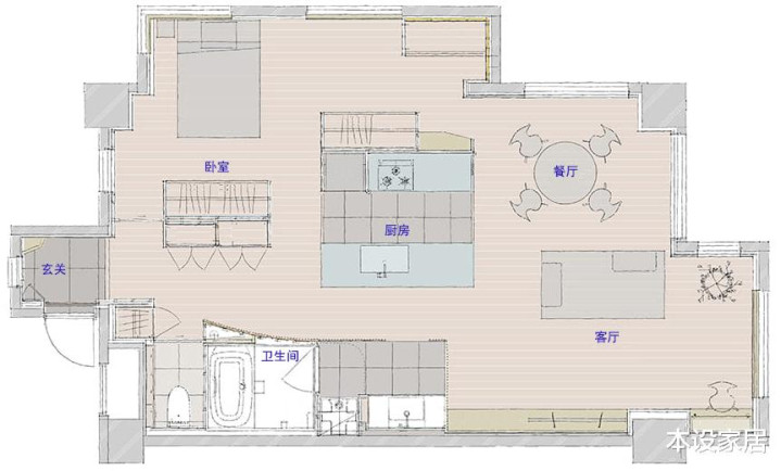 探求到茕居,以及明天养老的需求,卧室莫得门,六通四达,到任何空间都很浅易。