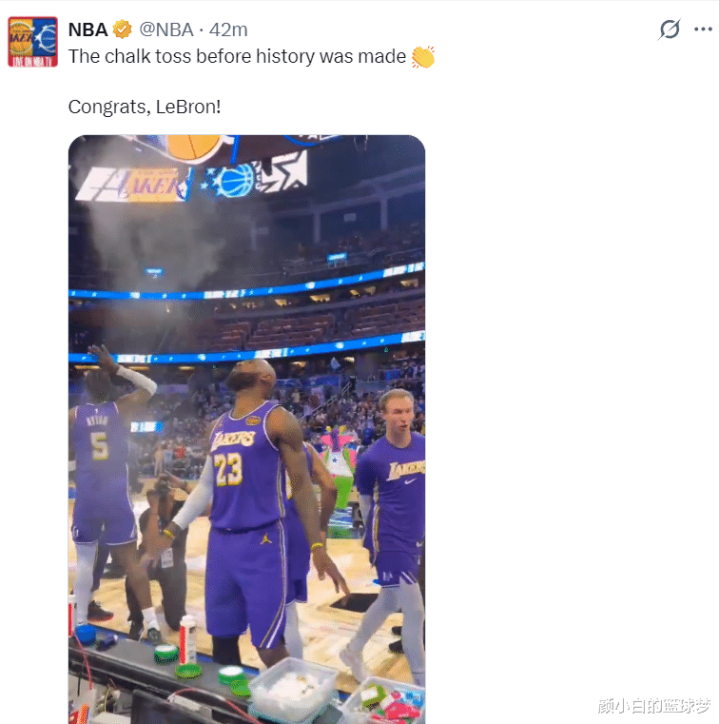 这是勒布朗创造历史的一场比赛,魔术主场有19597东说念主来不雅战创造魔术主场第二高的上座率,勒布朗抛镁粉的刹那间全场齐在得意。