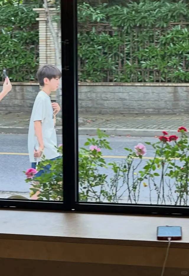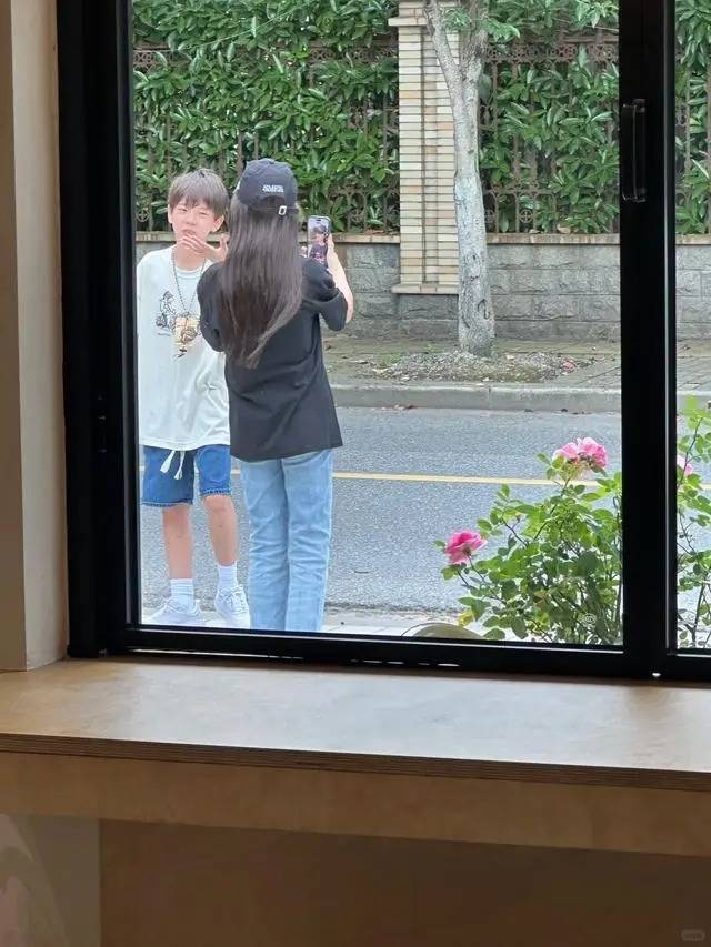 再看嗯哼,本年12岁的他,身高猛蹿,照旧快贴近甜馨的肩头,少年感有余。