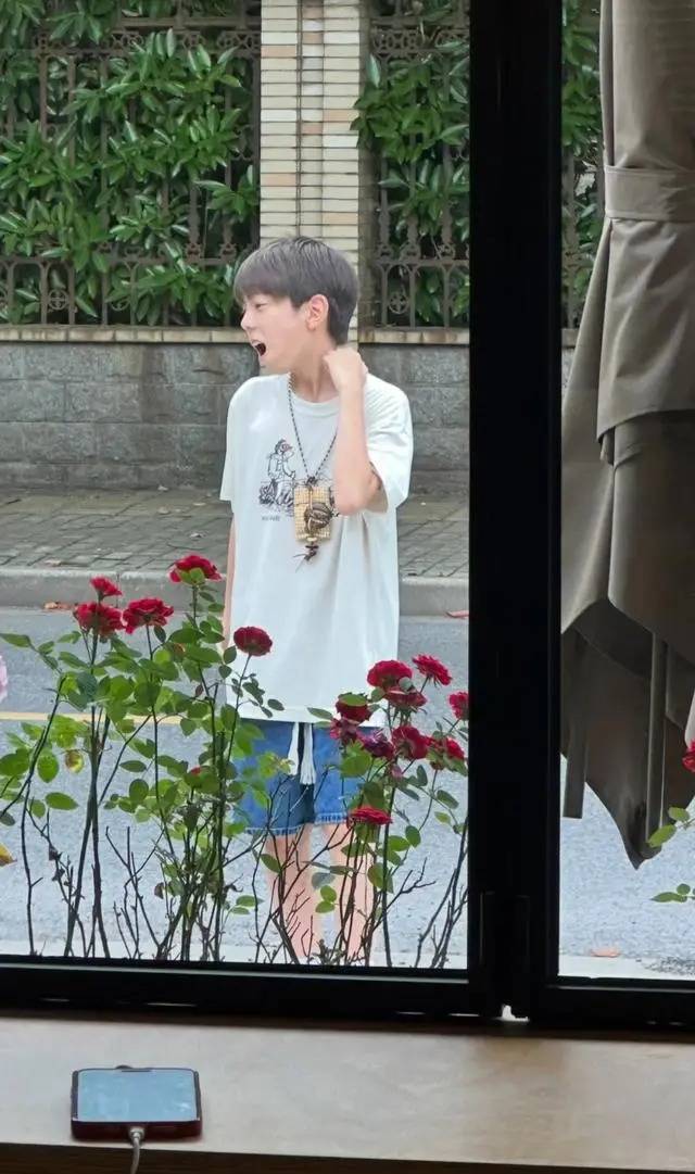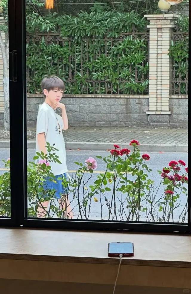 他穿了一件简单的白T恤,搭配一条牛仔短裤,穿搭知道又帅气,仅仅容颜跟小时候比,变化照实不小。