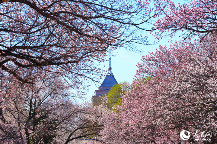 吉林大学杏花竞相盛开。东说念主民网记者李洋摄