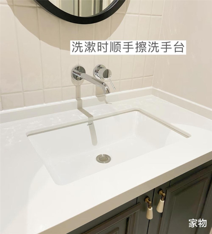又比如日常洗漱时溅到洗手台上、水龙头上的水渍,擦干净也就是顺遂的事儿,就这样个小民风,让家里的洗手台周围老是看着清清爽爽,看起来自满多了。