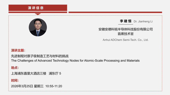 除了丰富的居品展示外,安德科铭还将带来前沿的本领瞻念察,该公司CTO李建恒博士将在先进材料海外论坛上,发表《先进制程对原子级制造工艺与材料的挑战》主题演讲。演讲将从先进逻辑与存储本领的发展趋势切入,深入计划先进先行者体材料及薄膜工艺在先进制程中的旁边场景与所濒临的严峻挑战。同期,他将围绕High-K材料、先进金属薄膜以及聘请性千里积等标的,共享安德科铭在前沿材料研发范围的最新想考与引申。