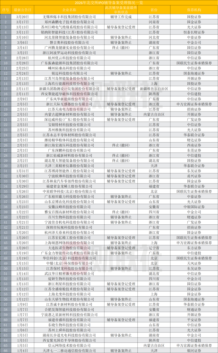 数据一:66家北交所IPO引导备案受理,一半为二次陈述