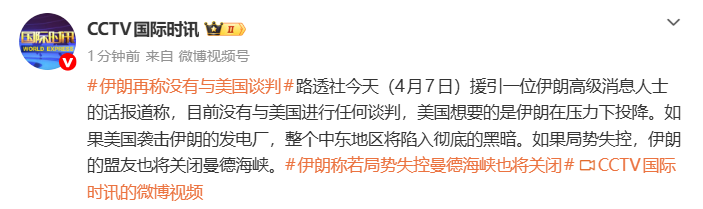 据@CCTV海外时讯,路透社今天(4月7日)征引一位伊朗高档音问东谈主士的话报谈称,当今莫得与好意思国进行任何辩论,好意思国念念要的是伊朗在压力下顺从。淌若好意思国紧要伊朗的发电厂,所有这个词这个词中东地区将堕入透澈的迷蒙。淌若式样失控,伊朗的盟友也将关闭曼德海峡。