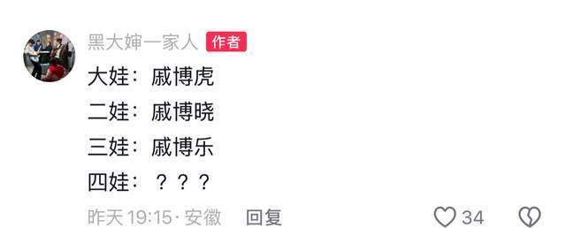 公开府上娇傲,黑大婶真名张马燕,在这之前依然生养三个男儿,差异是09年的大男儿戚博虎,11年的二男儿戚博晓,23年的小男儿戚博乐。