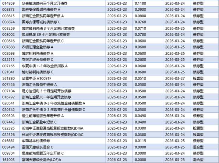 五、03月23日基金分成一览