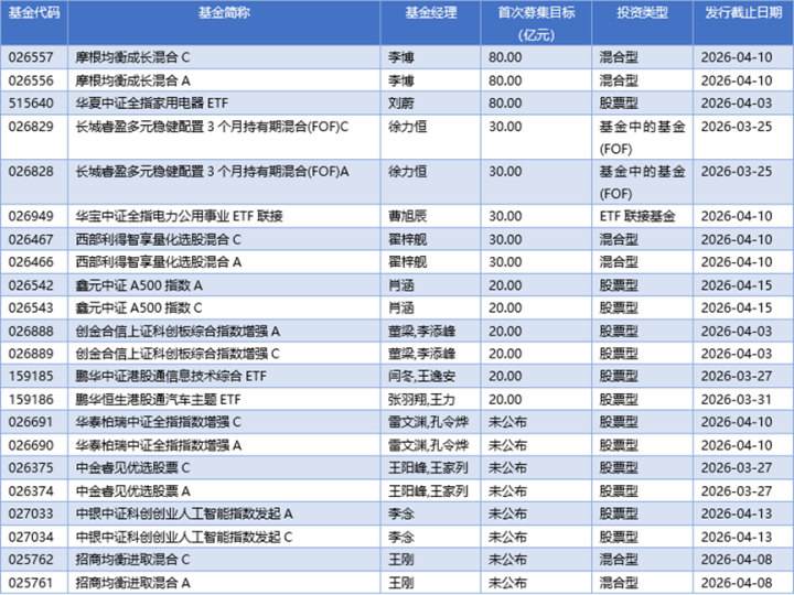 3月23日至29日当周,全商场仅24只新基金恭候刊行,流通两周低于30只,显著低于春节后成例水平。值得关心的是,港股联系基金成为公募布局暗线:本周待发新基中,汇添富港股通周期精选、鹏华港股通讯息时刻ETF、鹏华恒生港股通汽车主题ETF、汇添富中证港股通医疗主题ETF等4只产物贯串亮相,反馈机构对港股后市关心度较高,正通过产物端进行前瞻性布局。