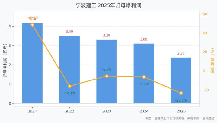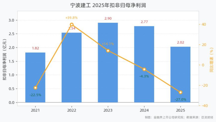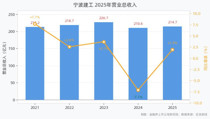4月20日,宁波建工发布2025年年报。敷陈闪现,2025年公司兑现交易总收入214.67亿元,同比增长1.93%;兑现归母净利润2.36亿元,同比下滑23.48%;兑现扣非归母净利润2.02亿元,同比下滑27.04%;基本每股收益为0.21元,加权平均ROE为4.92%;贪图动作净现款流为-2.28亿元,同比下滑715.97%。