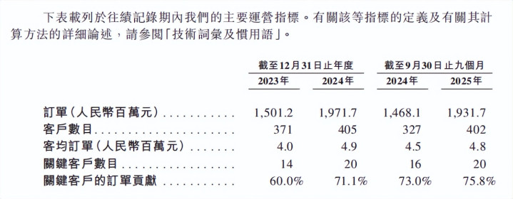 客户汇集度方面,2023年、2024年及结尾2025年9月30日止九个月,来自前五大客户的收入差别占当期总收入的32.1%、36.7%及48.2%。其最大单一客户的收入差别占当期总收入的15.6%、12.7%及30.4%。连结重要客户订单孝顺升至75.8%,不错看到订单资源正向头部客户汇集,大客户、大神气在业务中的权重正在高潮。