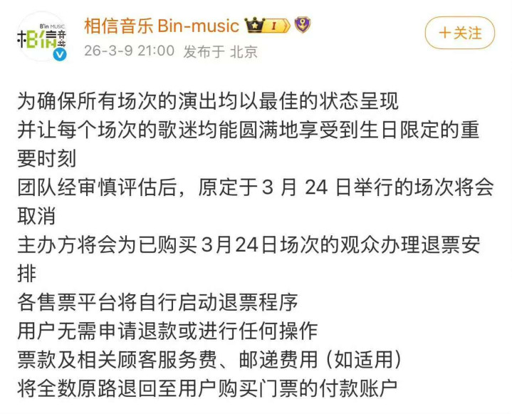 {jz:field.toptypename/}客不雅来说,五月天这次取消演唱会的过程,如实不对常理。纵不雅文娱圈,演唱会一朝公布工夫、门票开售,若莫得非凡原因——比如艺东说念主生病受伤、出现负面公论被贬抑、顶点天气无法举行等,主持方毫不会圣洁取消。况兼行业内默许,若主持方主动取消或转变演唱会工夫,除了退还门票,还会承担粉丝因演唱会预订的机票、栈房亏蚀,毕竟粉丝为了赴约,早已提前安排好行程,机票栈房要么扣手续费,要么无法退还,这份亏蚀本就该由主持方承担。