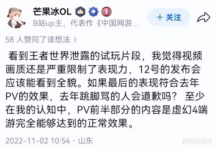 靠近质疑,好多b站大up主皆在给王者荣耀寰宇站台,比如“芒果冰”,“智能路障”一类,皆是撑握游戏pv等于真实机的。