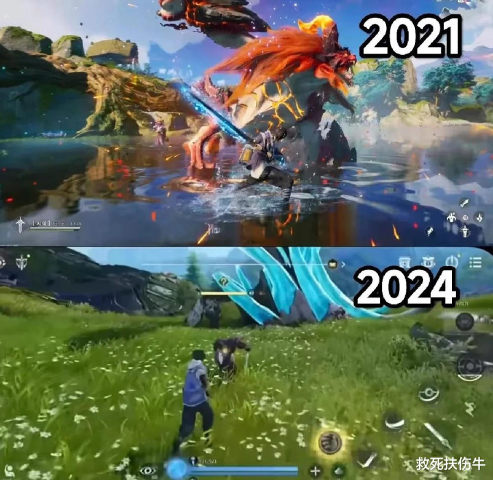 其中很大原因是游戏中期更动定位了,原本是对成宽恕神单机灵通寰宇,背面24年出场的时候,仍是说是mmo玩法了,多东谈主游戏当然不可能原有单机游戏的画质。