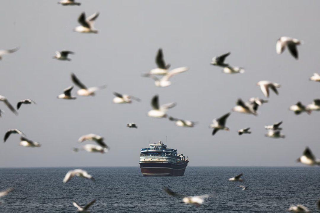 ▲ 2026 年 3 月 2 日,在好意思国与以色列同伊朗发生纰漏时辰,从阿曼穆桑达姆地区拍摄到霍尔木兹海峡一艘船只隔邻有鸟群飞过的画面(图源/路透社)