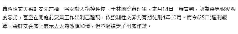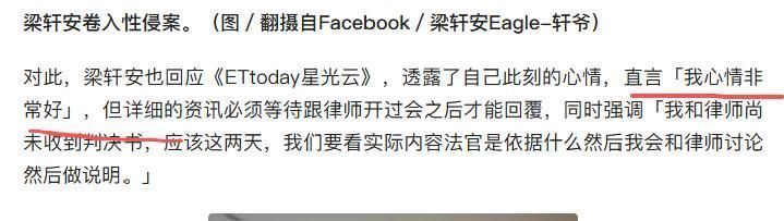 2026年3月18日,台媒表示王法终审遵循:梁轩安因触犯“强制性交罪”,照章获刑四年十个月。