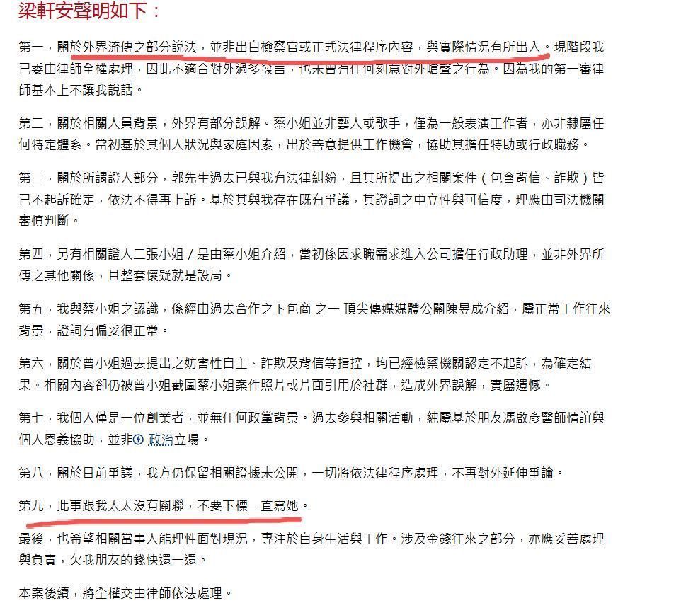 疑似因该报说念激愤,梁轩安随后密集发布十条默契声明,中枢内容包括:网传判决内容特别,案件存在紧要疑窦,我方实为他东说念主设局摧毁。