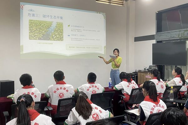 典礼为止后,科普试验圭臬有序张开。红围巾林长小队的校外指点员、广州市荔湾区芳村小学南漖学校刘湛泉校长围绕公园榕树、木棉等乡土树种,普及古树名木保护、树龄监测、树木相沿与病虫害防治等常识,让队员们在草木间读懂当然密码。随后,一场别开生面的水环境保护讲座火热开讲。荔湾区河长办专科东谈主员以珠江流域为例,深入浅出地熏陶水生态保护、水资源大略、水体沾污识别等常识,kaiyunsports队员们负责凝听、奋勇互动,在问答中加深了对“看护碧水”的相识与招供。